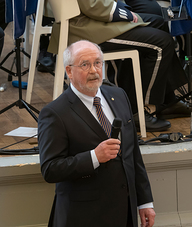 Klubin presidentti Kim Fredriksson toivottamassa konserttiyleisön tervetulleiksi.